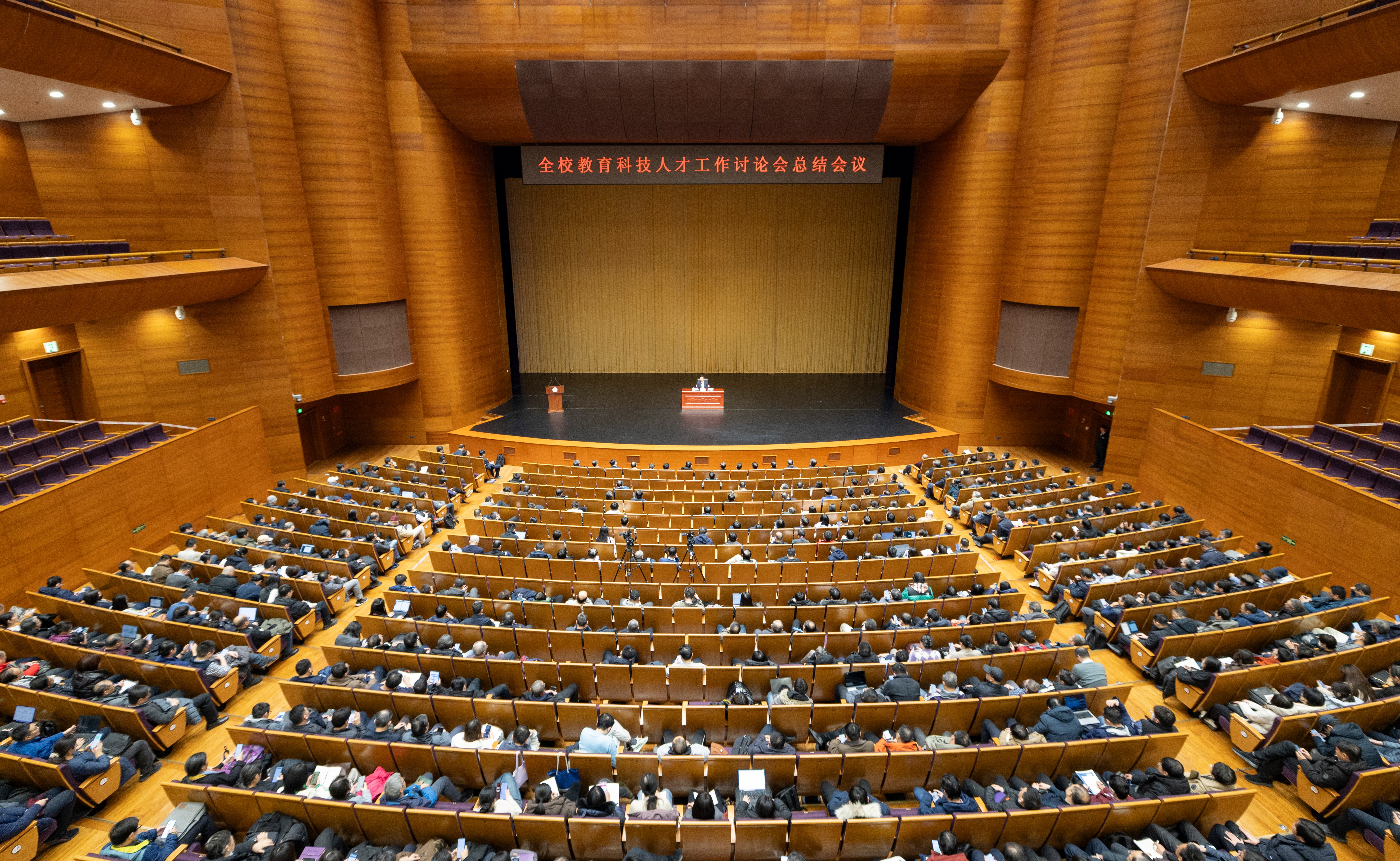 12月12日,清华大学教育科技人才工作讨论会总结会议在新清华学堂举行。校党委书记邱勇作总结报告,校长李路明等校领导班子成员出席。校党委常务副书记向波涛主持会议。
