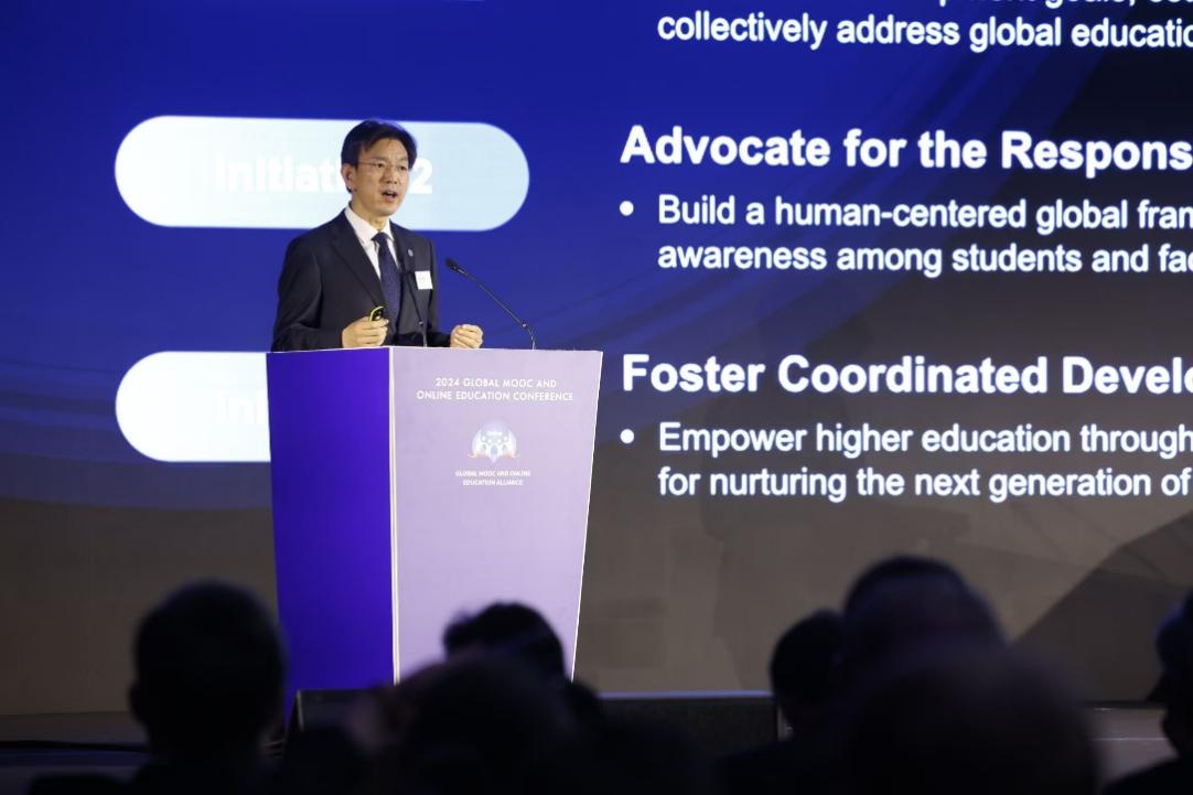 President Li Luming addresses the 2024 Global MOOC and Online Education Conference