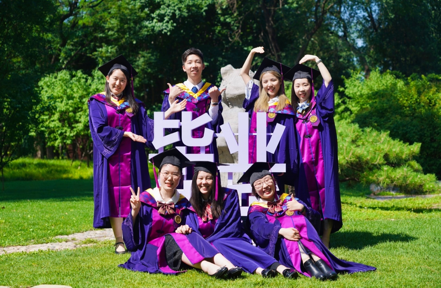 Wearing caps and gowns, Tsinghua undergraduate seniors gathered at the main commencement ceremony venue outside the Tsinghua Auditorium, and nine other outdoor viewing points on campus, to watch their commencement ceremony and receive their hard-earned degrees while maintaining physical safety standards.