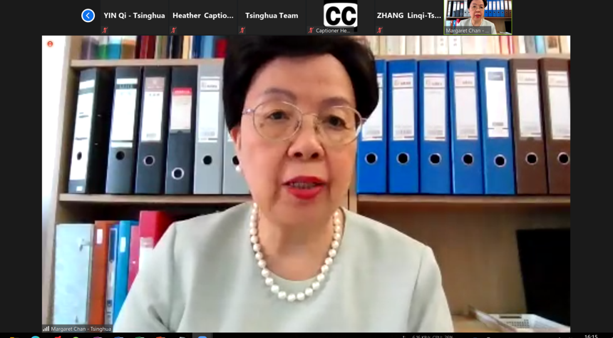 Margaret Chan, the Inaugural Dean of Vanke School of Public Health Tsinghua, and Honorary Director-General of the WHO, was one of the two keynote speakers of the symposium. She said that the international community should continue to uphold the concept of a community of a shared future for mankind, further strengthen cooperation under the guidance and coordination of the WHO, work together to overcome the current crisis and build a global community of health for all.