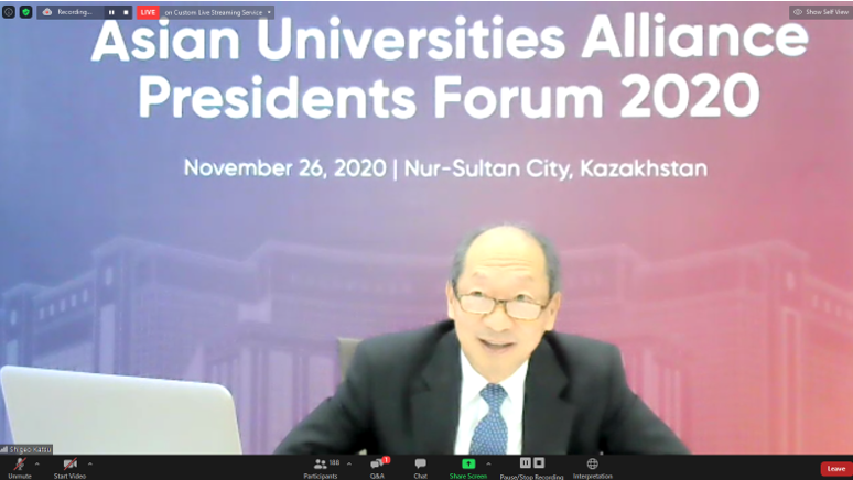 The Asian Universities Alliance (AUA) Presidents Forum 2020, jointly organized by the AUA Executive Presidency 2020-2021, Nazarbayev University (NU), and the AUA Secretariat, was held online on November 26.