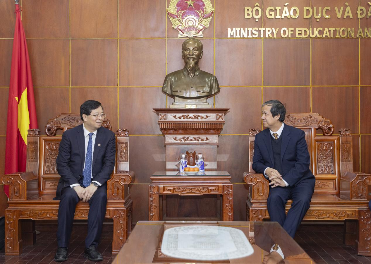 On Jan 30, Qiu visited Vietnam's Ministry of Education and Training, holding talks with Minister Nguyen Kim Son and Deputy Minister Nguyen Van Phuc. Qiu outlined Tsinghua's history, educational philosophy, and achievements in comprehensive reform. He mentioned that China and Vietnam share common goals and destinies, with increasingly close exchanges in various fields and immense potential for cooperation in higher education. Looking to the future, there will be an increased effort to support Vietnamese students and scholars in their studies and exchanges at Tsinghua. This initiative aims to effectively enhance cooperation in talent cultivation, technological innovation, and cultural exchanges between the two sides. Tsinghua will support talent cultivation for the joint development and prosperity of China and Vietnam and contribute to the inheritance and maintenance of the traditional friendship between the two nations.