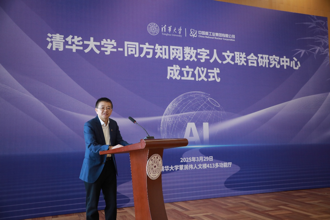 Pan Jianming emphasized the long-standing partnership between CNNC and Tsinghua, from pioneering China’s nuclear industry to now setting up a new humanities center. Marking the 70th anniversary of the founding of China's nuclear industry, he said that the center embodies the spirit of the historic "Two Bombs and One Satellite" program in the digital era and aligns with the national cultural digitization strategy. Tsinghua University has a leading advantage in the field of digital humanities, while Tongfang CNKI possesses rich knowledge resources and technical expertise. This collaboration will achieve complementary advantages and jointly promote the creative transformation and innovative development of China's outstanding traditional culture.