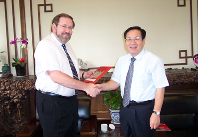 During their talks, President Gu and Mr. Mullarvey exchanged ideas on students, fund raising, and so on.