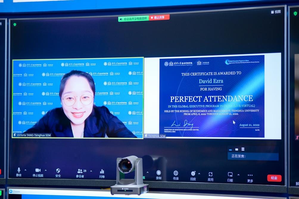 These senior executives should not only overcome the difficulties of the time difference, but also coordinate their busy work and maintain the balance of family life. In the face of pressure from all aspects, participants who still participated in all the courses and performed well won the GEPC Perfect Attendance Award. Victoria Yunduan Tang, Associate Director of the Executive Education Center of Tsinghua SEM, congratulated the winning participants and presented them with certificates.