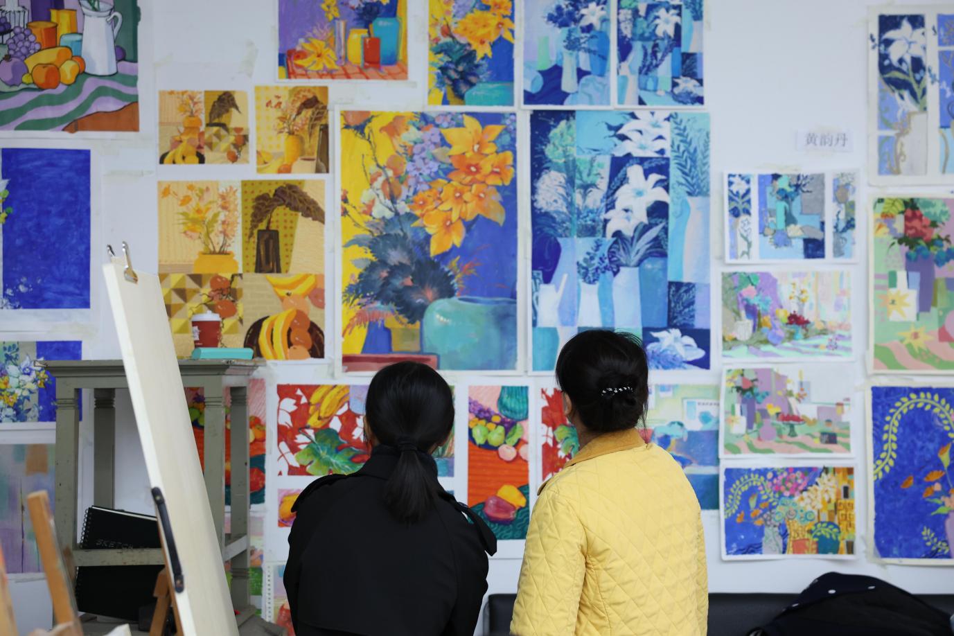Each Friday, a collaborative session convenes professors from Chinese painting, oil painting, visual communications, and more. They gather to share insights and offer critiques on student works. These professors actively rotate between ten different classes, ensuring that students gain from a broad spectrum of artistic insights and constructive feedback, enriching their educational experience with every session.