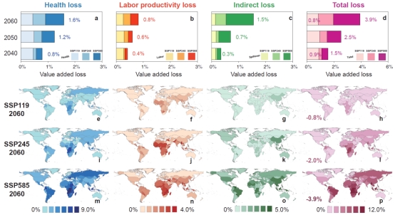 Figure 1 Global heat-related losses in the midcentury and their distributions across the world.