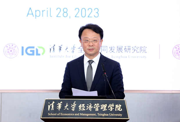 Bai Chongen, dean of Tsinghua University's School of Economics and Management, delivers a keynote speech at the convening event of Latin American and Caribbean ambassadors at Tsinghua University in Beijing, April 28, 2023. [Photo provided to China.org.cn]