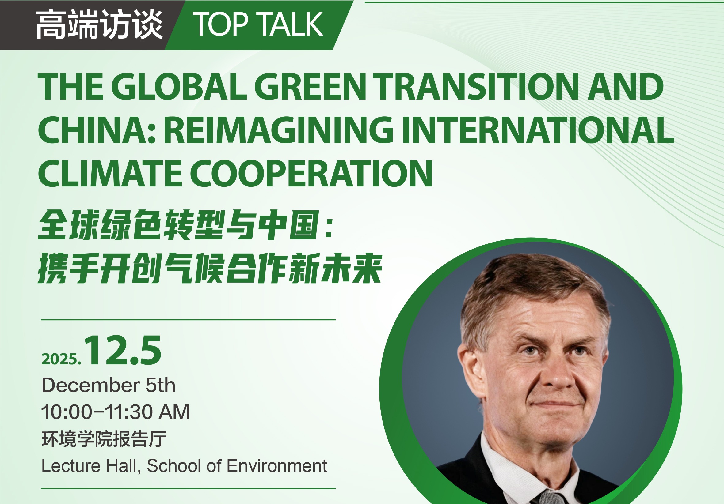 Tsinghua Environmental Forum | Mr. Erik Solheim:The Global Green Transition and China: Reimagining International Climate Cooperation