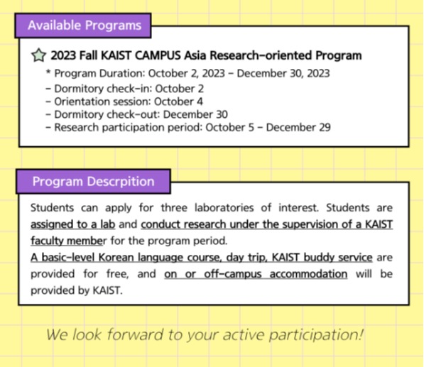 项目信息 | 2023年亚洲校园-韩国科学技术院秋季实验室研修项目