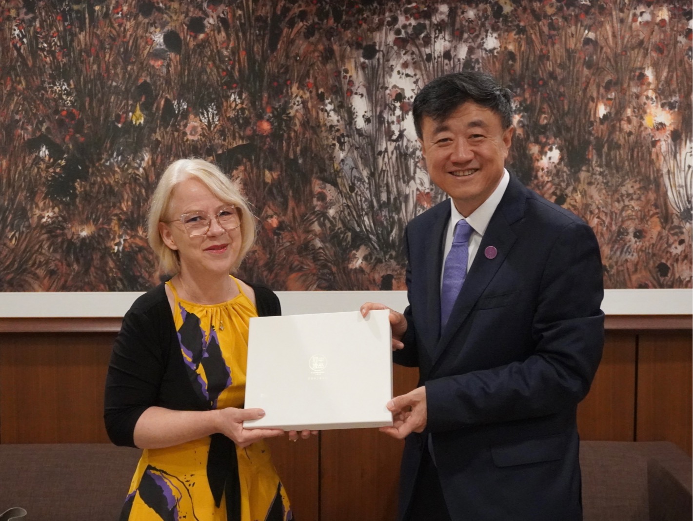 9月20日上午,清华大学副校长、教务长杨斌在艺术博物馆会见了联合国开发计划署驻华代表白雅婷一行。双方围绕可持续发展领域的合作与研究交换了意见。