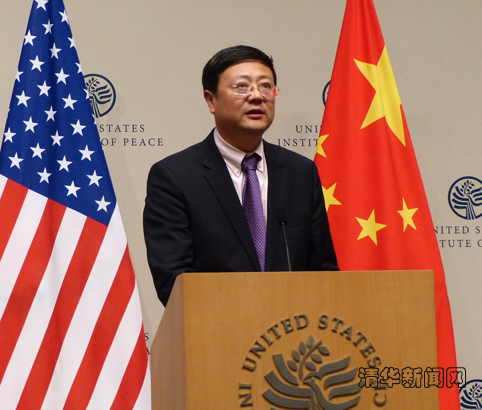 在刘延东副总理演讲前,清华大学校长陈吉宁发表致辞,他首先回顾了清华在其百年发展历程中,作为中西文化交流的桥梁所发挥的作用。陈吉宁进一步指出,在全球化的今天,大学在应对全球共同挑战、塑造未来国际关系、推动人类文明进步中,应该承担更大的责任,发挥更大的作用。而面对长期复杂的共性挑战,我们需要有一个途径、有一种机制、有一条纽带,把包括中美两国在内的世界各国更紧密地联系在一起,携手应对挑战,谋求共同发展。
