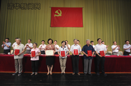校党委副书记邓卫宣读了《中共清华大学委员会关于表彰先进党支部、优秀共产党员、优秀党建与思想政治工作者、从事党务工作三十年以上的党务工作者的决定》,出席会议的领导为获奖集体和个人颁奖。