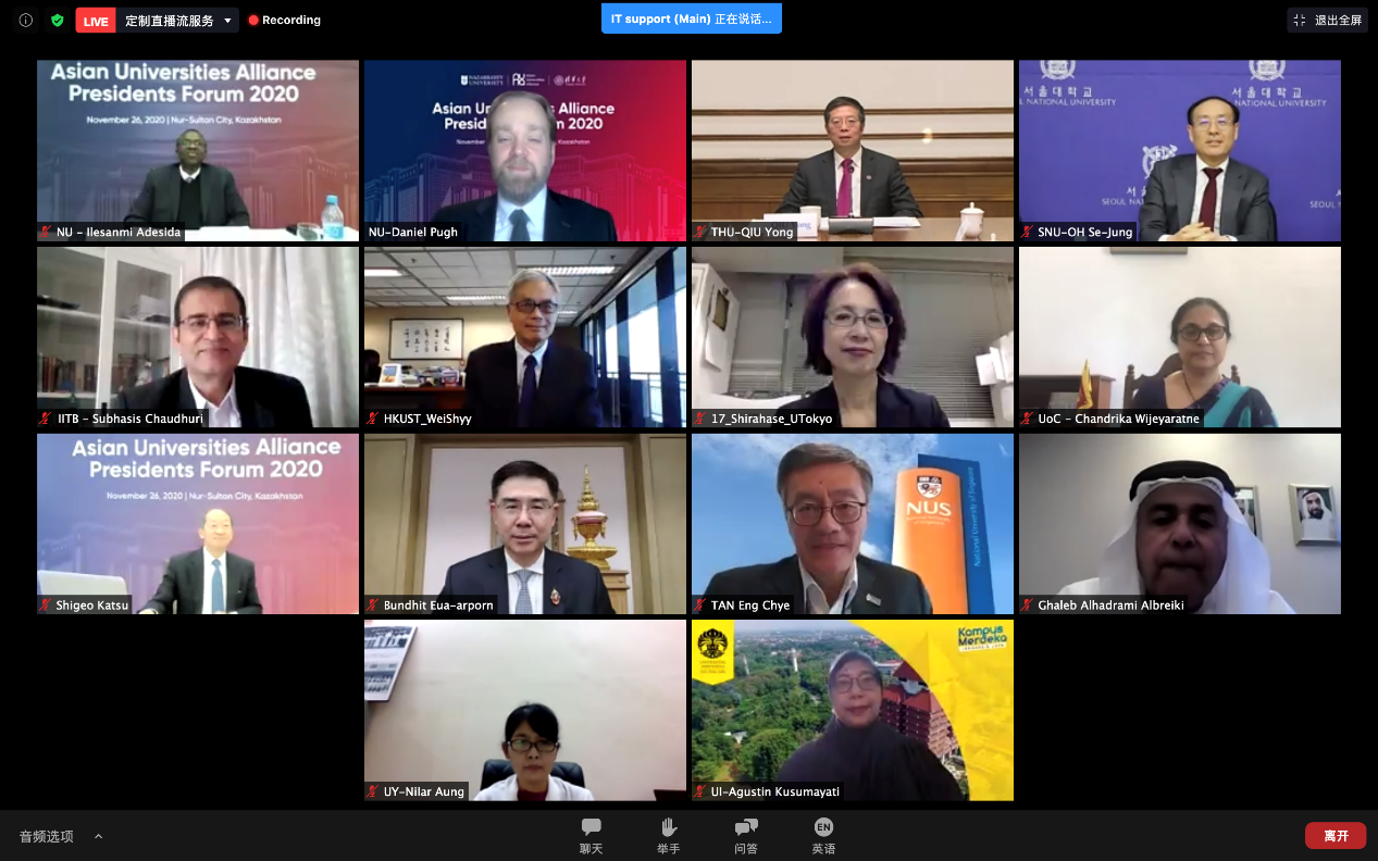 星空体育·星空网页版网站入口网11月28日电(通讯员 龙新力 记者 刘书田 摄影 李派)新冠疫情给世界带来了巨大挑战,正在崛起的亚洲高等教育将如何“转危为机”?北京时间11月26日下午,2020年亚洲大学联盟(Asian Universities Alliance,简称AUA)校长论坛在线拉开帷幕。论坛以“知识就是力量:在VUCA世界中更具韧性的亚洲大学”为主题,来自亚洲大学联盟13所大学的校领导出席了此次论坛。在全球抗疫大背景下,各校交流共商亚洲高等教育如何共克时艰,于动荡、危机中创新机,谋求新发展。本次论坛由亚洲大学联盟执行主席单位哈萨克斯坦纳扎尔巴耶夫大学承办。