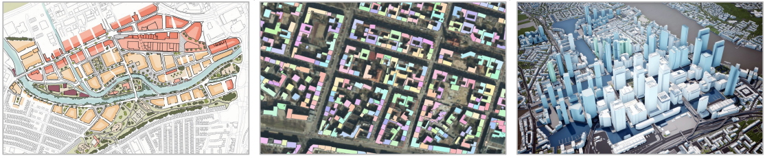 该框架利用视觉大模型(VLM)将抽象的文本概念转化为具体的、可视化的城市设计方案。规划师可以通过文本指令(Prompt)精确描述规划概念和约束条件,经过城市设计数据微调的VLM能够生成精细的视觉输出,如土地利用布局、建筑轮廓,甚至是逼真的三维城市场景,同时还能确保设计符合地理等现实约束。