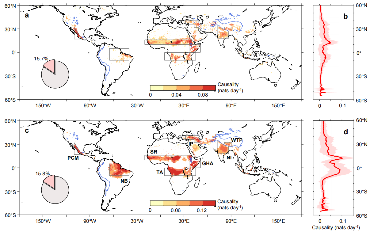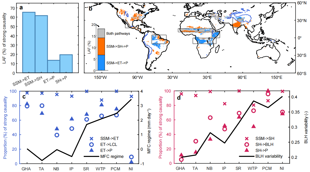 研究成果以“全球土壤湿度-降水耦合的因果路径”(Causal pathways underlying global soil moisture–precipitation coupling)为题,于10月8日在线发表于《自然·通讯》(Nature Communications)。