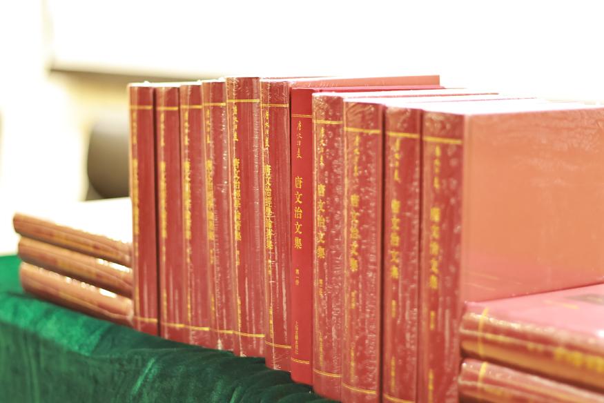 开幕式后举行了《唐文治集》新书发布会。《唐文治集》主编、澳门大学教授邓国光表示,期待学界充分利用这套文集,推动学术研究进一步发展。上海古籍出版社总编奚彤云讲述了邓国光教授团队历时二十载整理完成十八册《唐文治集》的过程。
