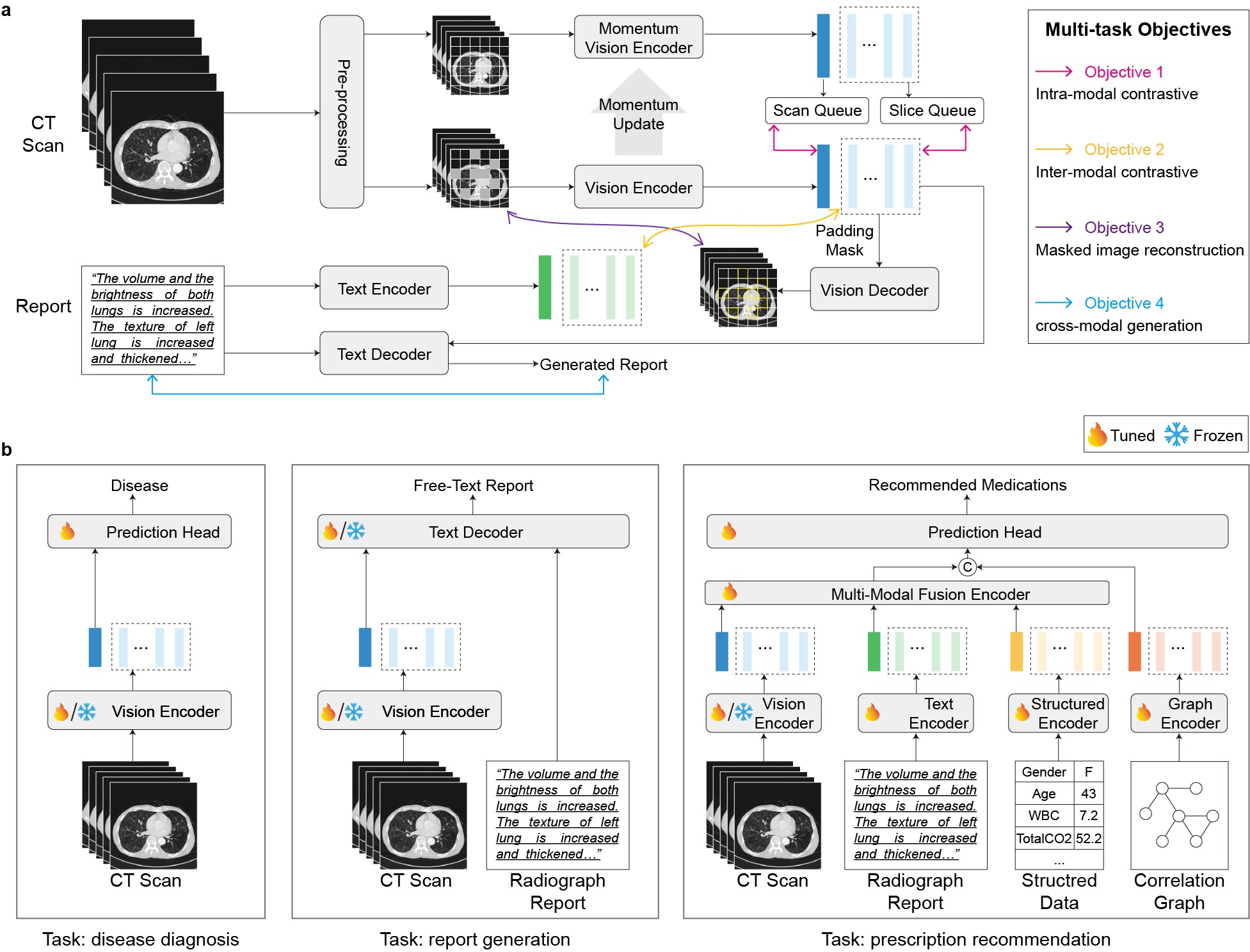 星空体育·星空网页版网站入口网11月11日电 近日,清华大学软件学院徐枫副教授团队在医疗人工智能方向取得重要进展,提出面向呼吸系统疾病诊疗需求的多模态基础模型MedMPT。该模型基于154274例胸部CT影像及其对应放射学报告开展多模态自监督学习,能够处理临床中多源异构数据,支持多类典型临床任务,在肺部疾病诊断、放射学报告生成和用药推荐等多个应用场景中取得领先性能,为通用医疗人工智能在真实临床环境中的落地提供了新的技术路径。