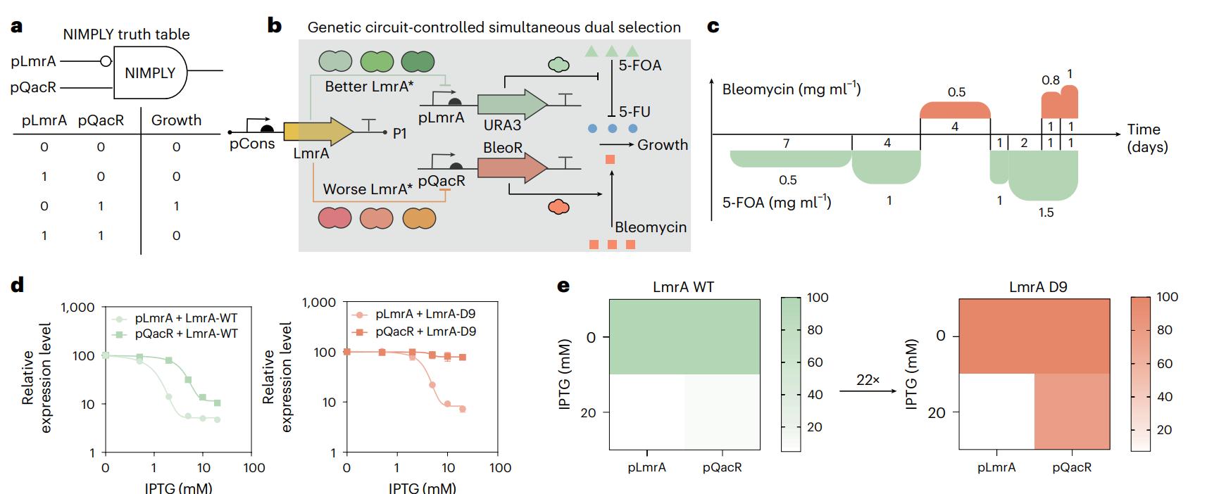 图3.LmrA的基因电路控制与生长耦合可编程进化