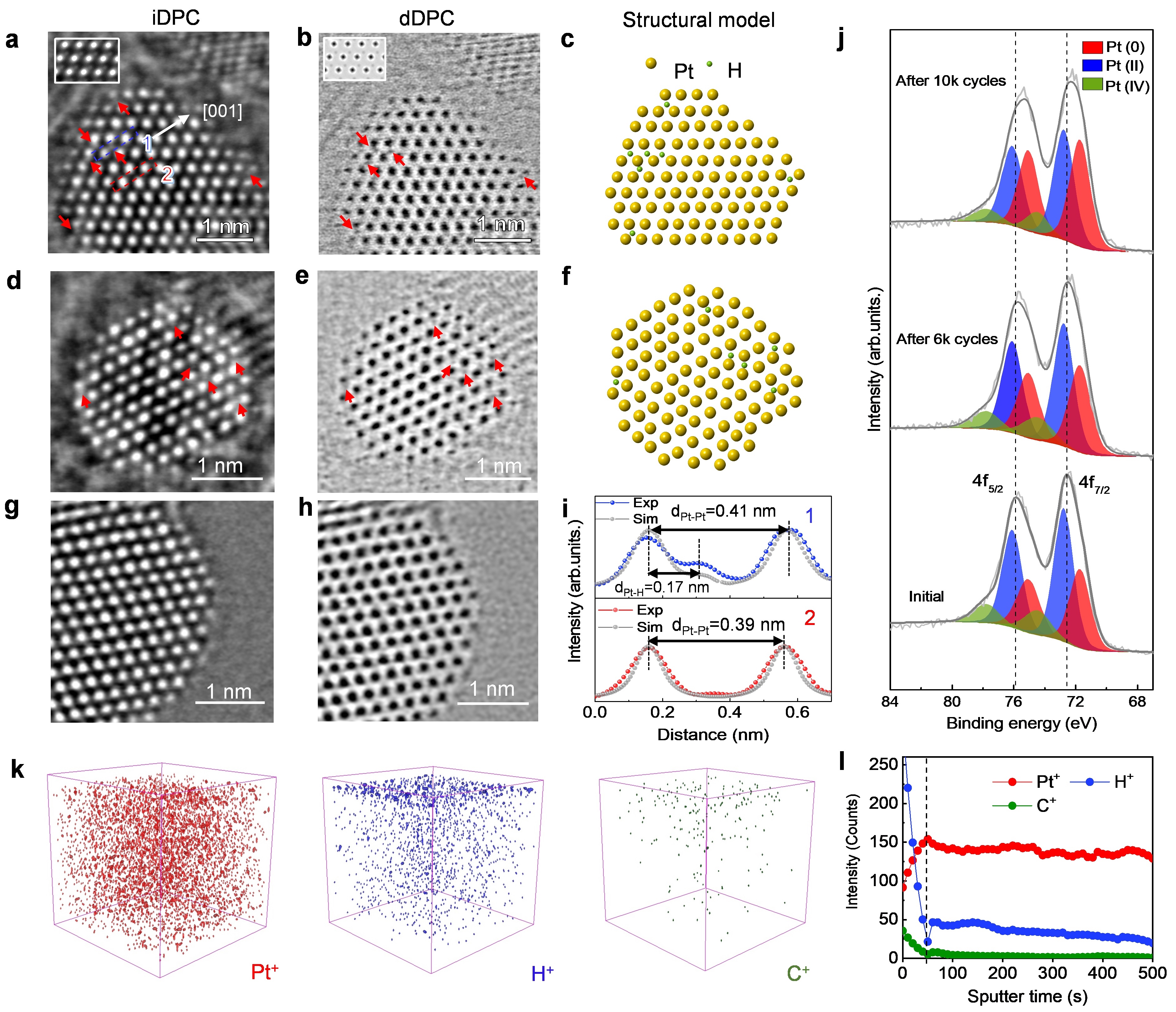 图2.氢吸附/脱附长期循环后铂纳米颗粒的DPC-STEM成像