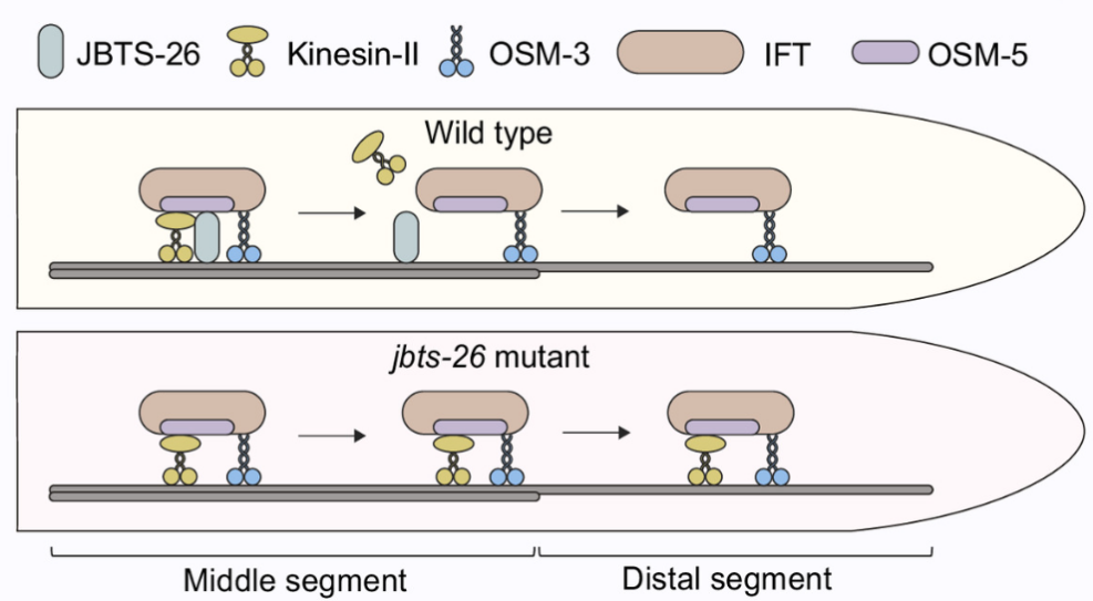 JBTS-26定位在纤毛中段的双联体微管,通过竞争性蛋白质互作促进Kinesin-II从IFT复合物解离