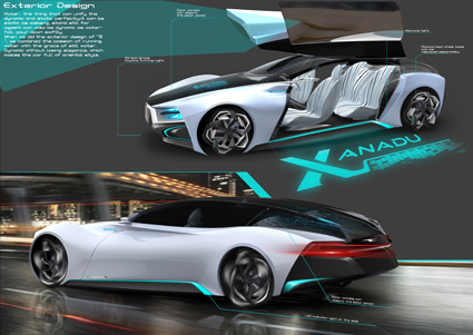 在第四届CDN大赛中,清华大学美术学院工业设计系研究生吴雨练、本科生刘可风的作品《香都》获得“最佳奢华概念奖”冠军。《香都》是一款外形时尚的豪华轿车,面向未来中国新兴高收入群体,车身采用流线形设计,黑白相间,内外浑然一体,宛如一件完美的艺术作品。