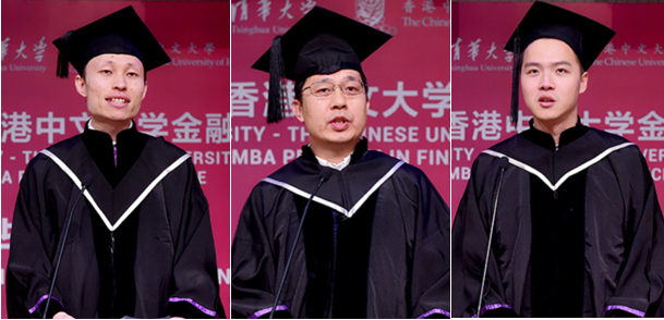 2020届毕业生代表杨晨回忆了大家在清华大学与香港中文大学的学习经历,衷心感谢学校、老师、同学与家人的帮助,并为母校送上最诚挚的祝福。2021届毕业生代表边宏宇用感恩、用心、友爱表达自己对FMBA项目两年学习经历的感受。2022届毕业生代表孙天逸期待和同学一道赓续清华和中大的优良传统,秉持行大道、利天下的志向与担当,满怀赤诚、无畏无惧地踏上新的人生旅程。