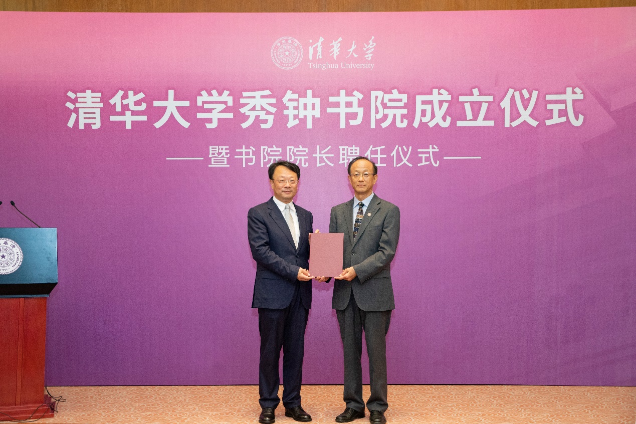 过勇宣读了秀钟书院成立决定。秀钟书院按照学校实体机构运行,聘请清华大学环境学院教授胡洪营担任院长。王希勤、过勇、彭刚、胡洪营、秀钟书院副院长岳东北共同为书院揭牌。随后,王希勤为胡洪营颁发了书院院长聘书。