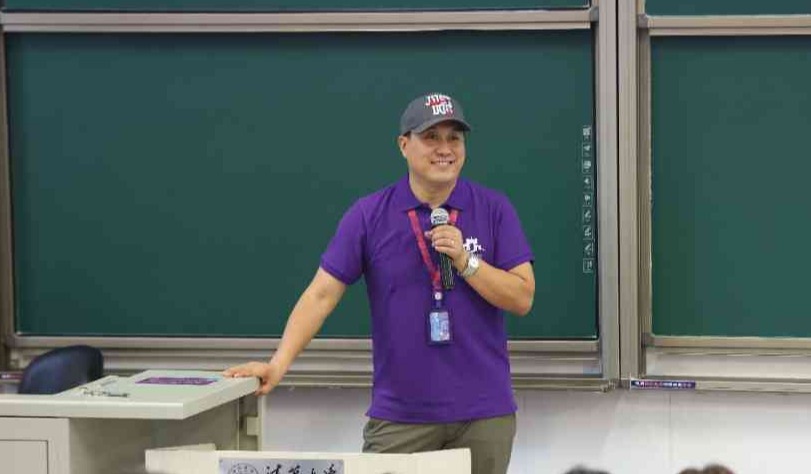 拓展营辅导员代表张浩海分享了过往参加拓展营的经历,鼓励同学们更快度过适应期。