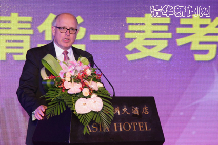 高策理在讲话中指出,项目的十年发展是一段不平凡的历程,目前已经步入良性发展轨道,今后还将继续结合中国金融和经济发展需要,不断创新,同时感谢各位校友对项目的支持和帮助,并希望同学们珍惜在清华大学和麦考瑞大学两所名校学习的机会。