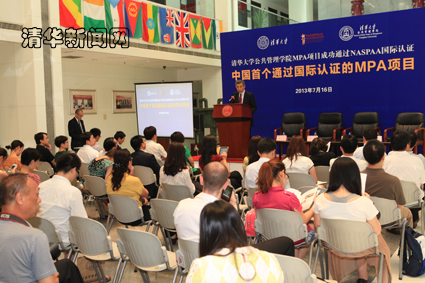 为促进清华和中国公共管理教育不断创新与发展,在立足中国国情基础上更好地借鉴国际经验,利用NASPAA平台,向国际同行学习并传播中国发展经验,清华大学公共管理学院在2011年5月加入NASPAA,成为这一组织中的首家中国会员单位。2012年初,向NASPAA正式提出认证申请,此后经过一年半的艰苦努力,顺利通过了各环节严格的认证程序,最终成功获得该组织的权威认证。