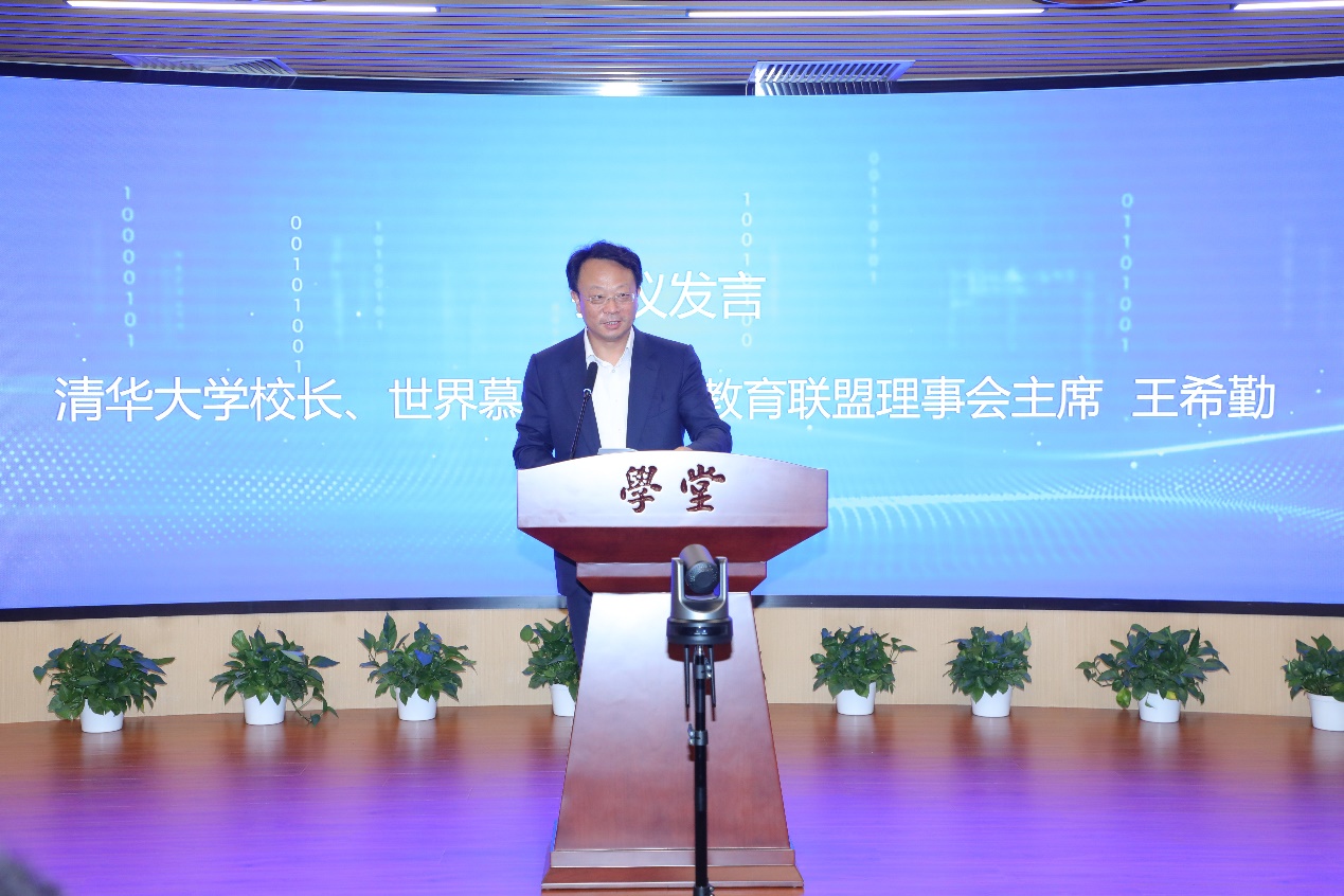 王希勤在讲话中指出,2013年清华大学建设并运营了中国首个慕课平台学堂在线,并致力于推动中国高等教育数字化转型。历经八年多的探索与创新,学堂在线平台全球学习者人数累计超过一亿人,这是清华大学发展慕课与在线教育的重要里程碑。他向各位学堂在线学习者表示感谢,正是由于他们的参与,成就了清华大学对于教育的可得性和可能性在广度与深度上的积极探索。