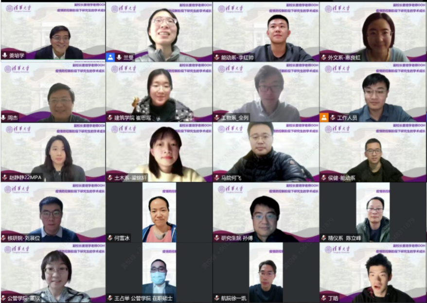 星空体育·星空网页版网站入口网12月31日电 12月以来,面对复杂严峻的疫情形势,为进一步听取同学们对于校园疫情防控工作的建议,加强交流,凝聚共识,郑力、彭刚、姜培学、王宏伟等校领导利用“开放交流时间”(Open Office Hour),与学生代表就当下校园疫情发展和疫情防控工作开展情况,以及疫情中的教学、科研、学习等话题展开交流讨论,为学生答疑解惑。