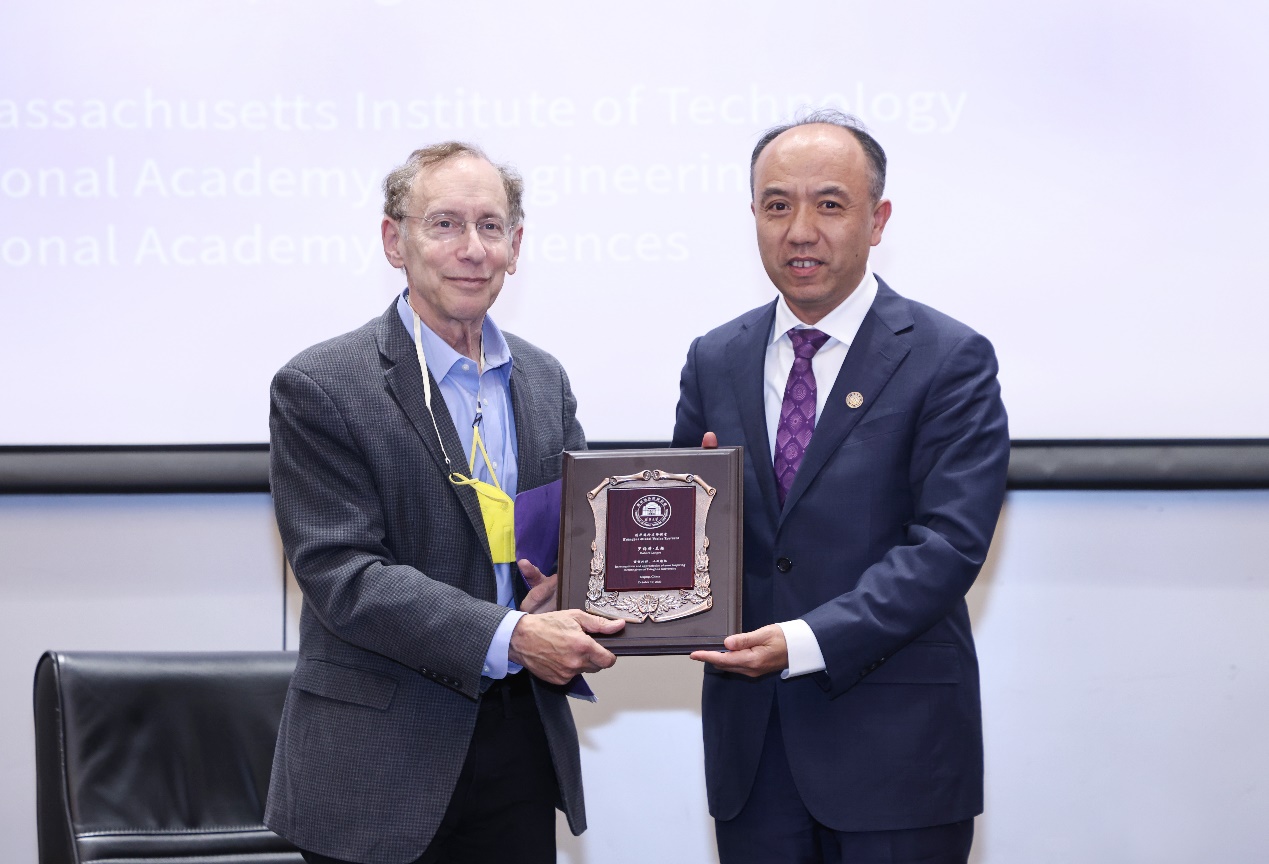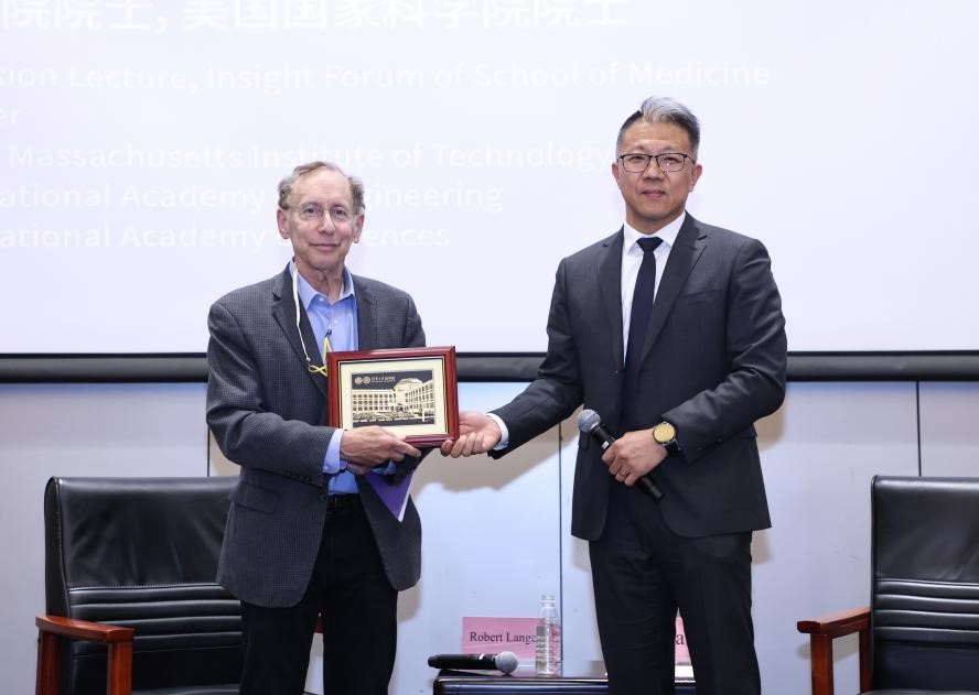 王宏伟向罗伯特·兰格赠送清华海外名师讲堂纪念牌