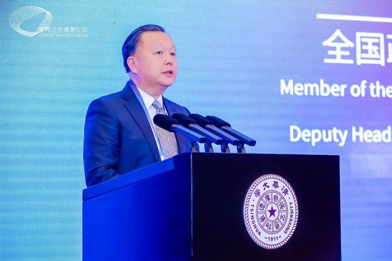 国家卫生健康委员会副主任、党组副书记雷海潮,国家疾病预防控制局副局长孙阳,清华大学校长王希勤,世界卫生健康论坛主席、清华大学万科公共卫生与健康学院院长陈冯富珍,万科集团创始人、董事会名誉主席、万科公益基金会理事长王石,国家卫生健康委员会医疗应急司司长郭燕红等出席论坛开幕式。开幕式由清华大学副校长王宏伟主持。