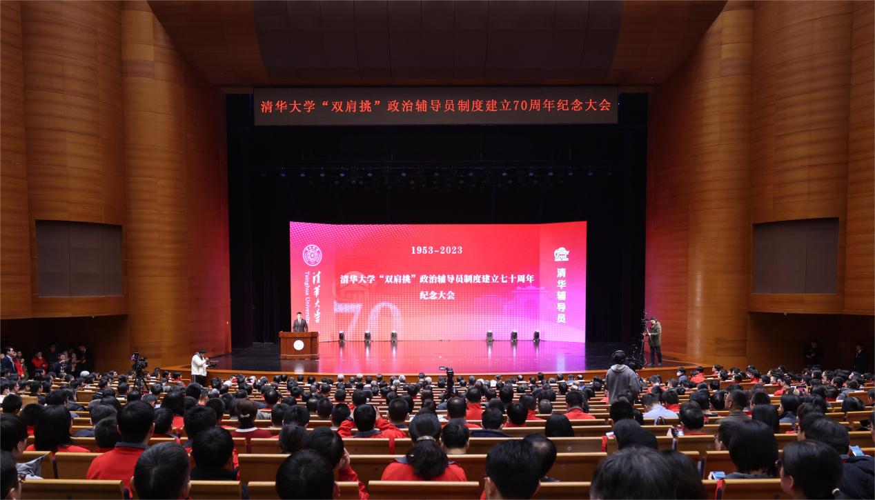 清华大学“双肩挑”政治辅导员制度建立于1953年。当时面对学生数量迅速增加、从事思想政治工作的干部数量严重不足的情况,时任校长蒋南翔创造性地提出选择学习成绩优良且觉悟较高的党团员担任辅导员、“半脱产”做思想政治工作,并以此逐步培养起一支又红又专、能够“两个肩膀挑担子”的思想政治工作队伍。70年来,“双肩挑”政治辅导员队伍不断发展壮大,目前已累计有近1万1千人担任过清华辅导员。一大批德才兼备的优秀人才从这支队伍中成长起来,成为了各行各业的领军人物和骨干力量。