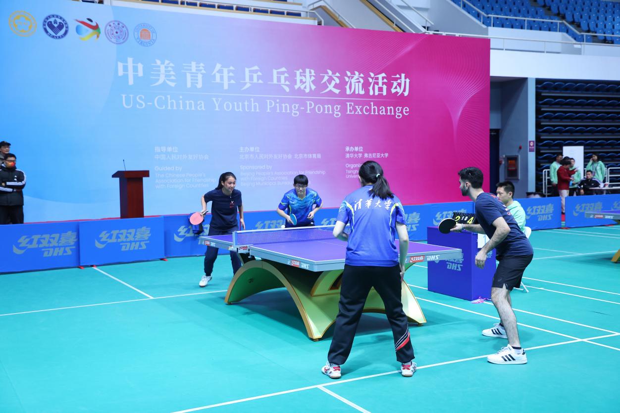 开幕式后,中美学生乒乓球友谊比赛在清华大学综合体育馆举行。
