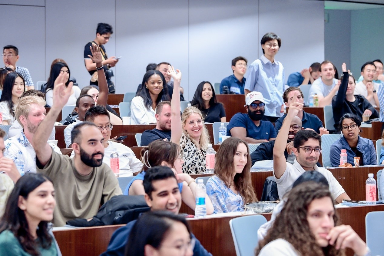 圆桌讨论环节由来自清华经管2022级全球MBA项目的学生何兆冬与哈佛商学院学生维奥莱塔·伊万诺夫斯卡(VioletaIvanovska)共同主持。白重恩、魏宏丞以及经管学院副院长徐心、何平作为圆桌嘉宾,与同学们围绕中国经济发展、前沿技术快速迭代、未来中国经济展望、商学院教育等话题进行了深入交流,并回答了同学们的提问。现场气氛热烈、互动频繁、掌声不断。
