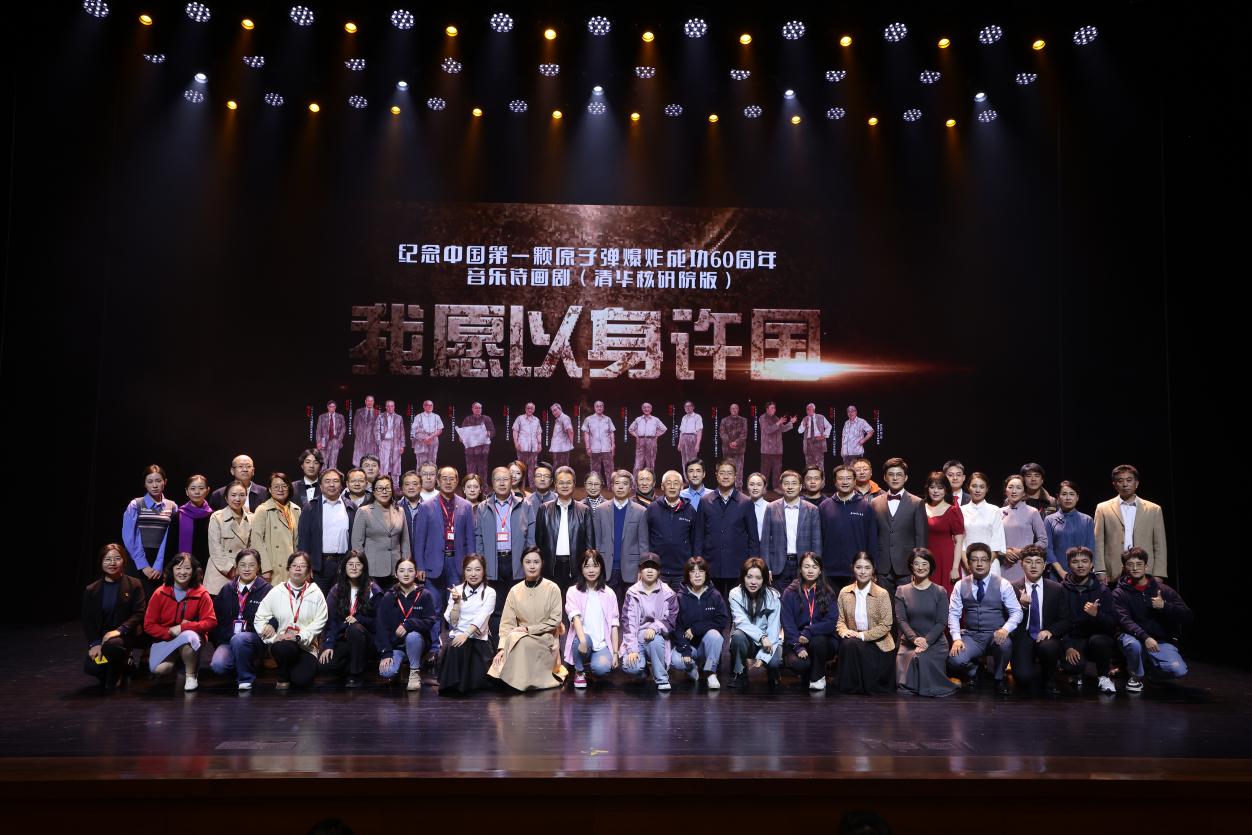 星空体育·星空网页版网站入口网10月25日电(记者 徐子越 摄影 曹文鹏)10月23日,“我愿以身许国,好像一棵英雄胡杨”的歌声响彻舞台,在新中国成立75周年、中国第一颗原子弹爆炸成功60周年、“两弹一星”精神提出25周年,清华大学校友、“两弹一星功勋奖章”获得者邓稼先诞辰100周年之际,清华大学核能与新能源技术研究院(以下简称“核研院”)与中核能源科技有限公司联合举办的音乐诗画剧《我愿以身许国》在蒙民伟音乐厅圆满完成首场演出。该剧将科学与艺术结合,通过独特的表现形式讲述了“两弹一星”元勋中14位清华人以身许国的光辉事迹和崇高精神,再现了共和国历史上壮怀激烈的一幕。