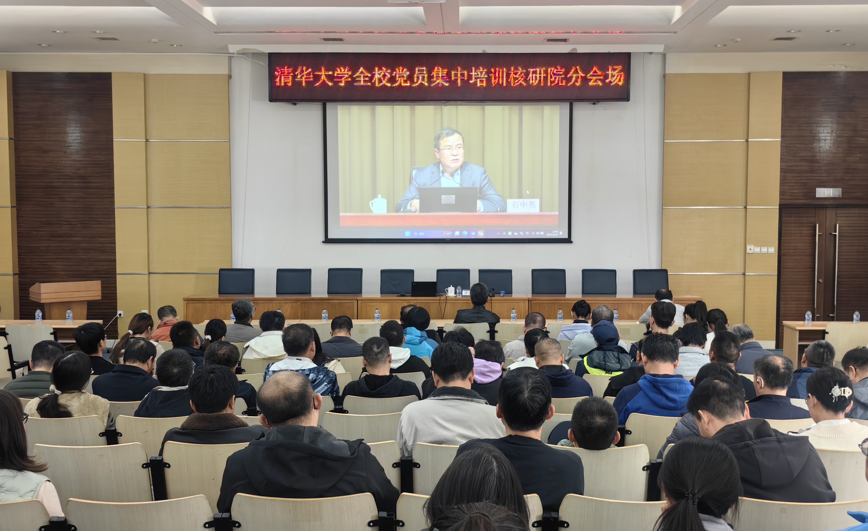 校领导邱勇、向波涛、过勇、郑力、赵罡、曾嵘、许庆红,部分老领导,来自全校各单位的1.4万余名在职教职工党员、离退休教职工党员在新清华学堂主会场、216个分会场和荷塘雨课堂参加培训。向波涛、教育研究院院长石中英作专题报告,许庆红主持。