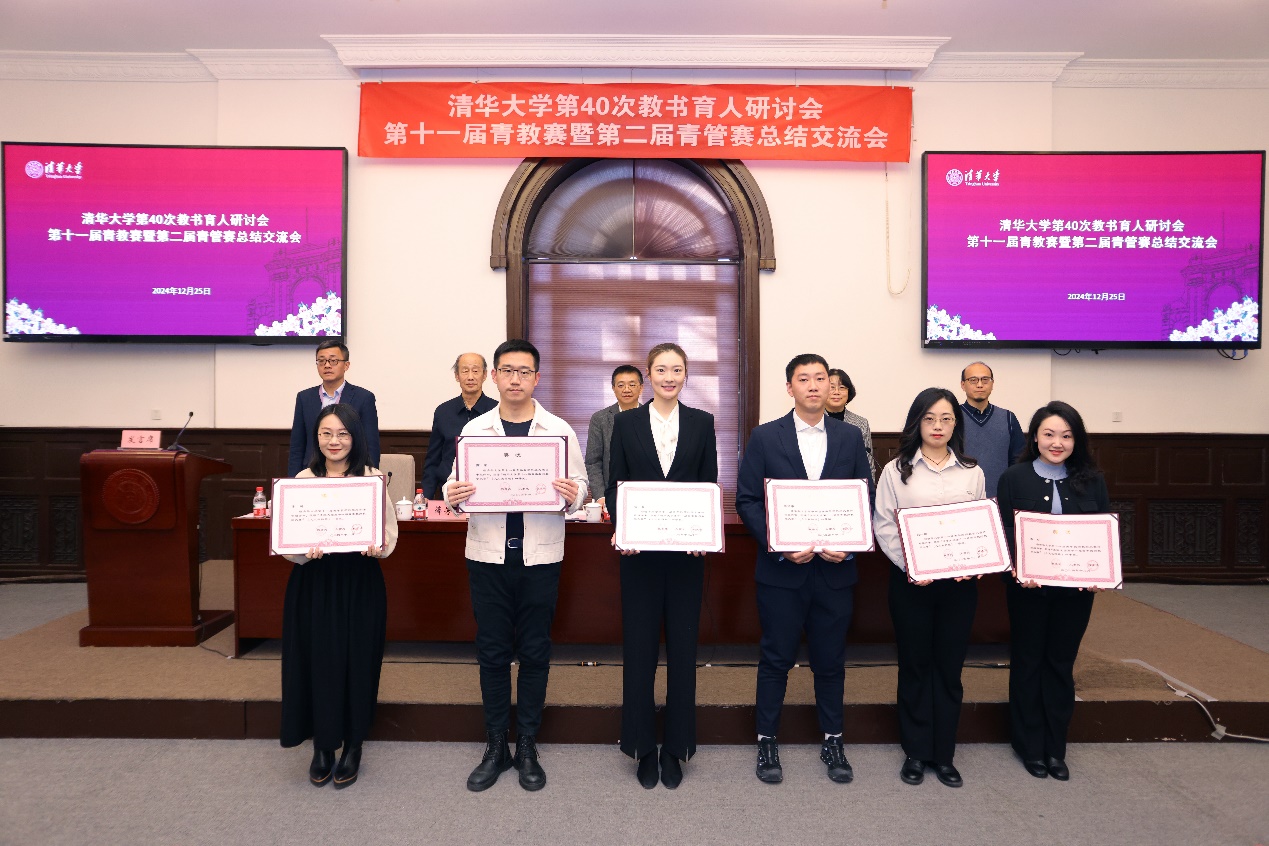 会上,彭刚宣读了清华大学第十一届青年教师教学大赛和第二届管理岗位青年教职工职业能力竞赛参赛教职工获奖名单,并对获奖教师表示祝贺。本届青教赛和青管赛从2024年8月底开始报名,11月底顺利完赛。青教赛设工科、理科医科和人文社科三个组别,共有来自41个院系的98名青年教师报名参赛,其中工科组37人、理科医科组25人、人文社科组29人完赛。经青教赛各专家评审组评审并报第十一届青教赛工作组审定,工科组共有13人获一等奖、13人获二等奖、11人获三等奖;理科医科组共有9人获一等奖、8人获二等奖、8人获三等奖;人文社科组共有11人获一等奖、11人获二等奖、7人获三等奖。本届青管赛共有来自32个单位的36名青年教职工报名参赛,除1人因公务冲突外,35名教职工结成12个团队参赛,经青管赛评审组评审并经第二届青管赛工作组审定,共有7个团队21人获一等奖,5个团队14人获二等奖,12人获最佳展示奖。