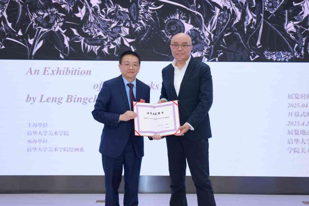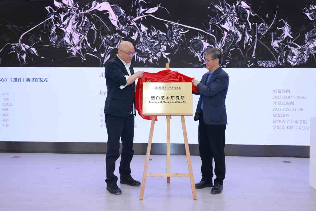 清华大学美术学院院长马赛宣读了《关于成立清华大学美术学院黑白艺术研究所的决定》,聘请冷冰川担任所长,并与冷冰川共同为研究所揭牌。