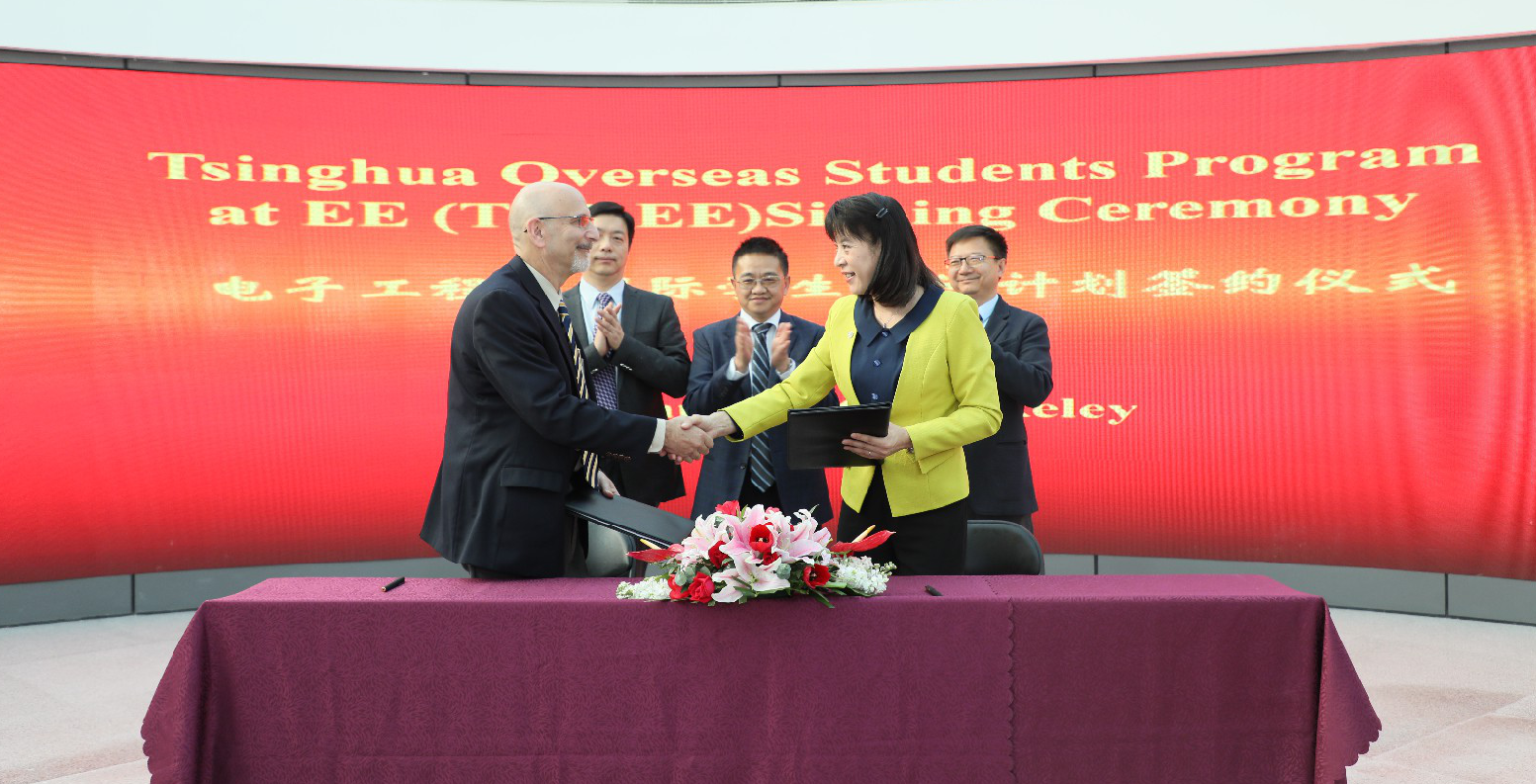 2019年11月11日,时任系主任黄翊东教授与加州大学伯克利分校EECS系主任Jeffrey Bokor教授签订了电子工程系国际学生访问计划项目协议(Tsinghua Overseas Students Program at EE,简称“TOP EE”)。该项目计划每年在世界范围内择优选拔15-30名世界著名高校电子工程及相关专业的学生,在清华电子系进行为期半年的学习。其中包括约4个月全英文专业课学习、实验室研究训练以及2个月的科技企业实习。清华电子系将为项目学生提供充实的电子工程领域教学、科研以及实习内容,同时还会考虑合作大学的具体情况做一些针对性安排,以丰富学生的阅历。“TOP EE”将推动电子系英文课程和培养体系的建设,进一步提升国际化人才培养能力和国际影响力。