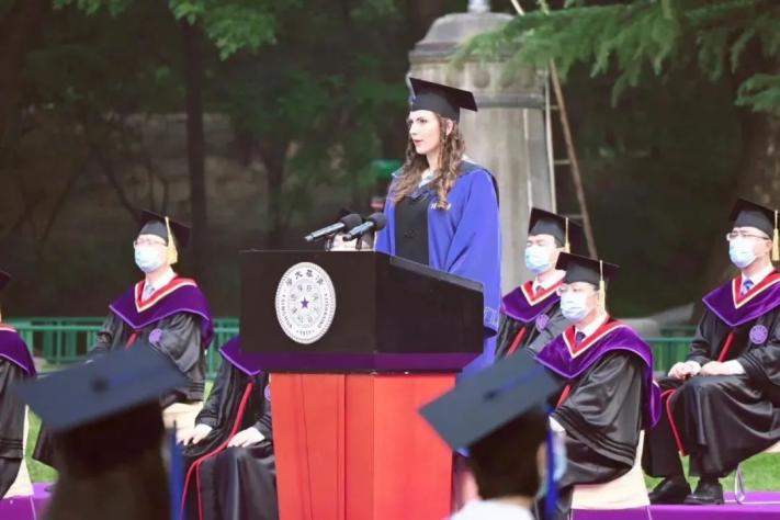 2020年清华大学研究生毕业典礼,伊瓦娜作为留学生代表发言