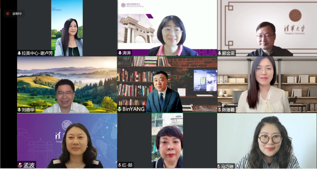 杨斌在讲话中首先高度肯定了拉美中心团队所作出的努力和贡献,并感谢国际处和各位理事成员的参与和支持。他说,拉美地区及国家与中国的物理距离遥远,但拉美中心发挥了“无须扬鞭自奋蹄”的精神,创造性地开展工作,敢于开拓,取得了突出的成绩,为清华大学全球战略作出了应有的贡献。杨斌充分肯定了拉美中心将学校的四个重要战略领域与拉美中心工作的有机结合,在在线教育、气候变化、公共卫生和数字经济领域的对外交流与合作上都取得了重要的进展。杨斌对拉美中心提出了殷切希望,期待拉美中心在未来继续发挥作用,增强校内外合作联动,继续推动清华对拉美地区高校及机构的合作。