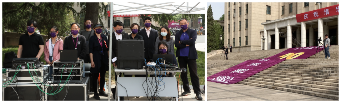 自2020年2月3日支持“清华大学全校师生同上一堂课”视频拍摄开始,这支保障团队已经为学校800余场活动和会议提供技术支持。他们不断迎接挑战并出色完成任务,特别是2020年疫情期间的毕业典礼,为满足疫情防控要求同时也要求体现活动的庄严、隆重、参与感,学校设置了15个会场,并要求分会场图像回传至大礼堂前的主会场大屏。经过多方商讨,保障组最终采用在主会场6机位拍摄(其中两个摇臂,4个固定机位),14个分会场分为7组按顺序调度7个移动摄像机,并利用5G信号将每个分会场画面回传至主会场导播台,切换后的信号与主会场6个机位,进行信号的二级切换,最终呈现给现场和直播平台的观众。同时,为满足主会场和14个分会场的航拍视频,还采用了三套无人机接力拍摄。这样规模的拍摄在高校也属首例,需要大量的人员、设备相互配合,信息化技术中心重大活动保障组与多个外协团队合作,组成了近100人的团队,经过多次演练、协调,保障了活动的顺利开展,直播观看人数超过3000万,直播效果被大家认可。