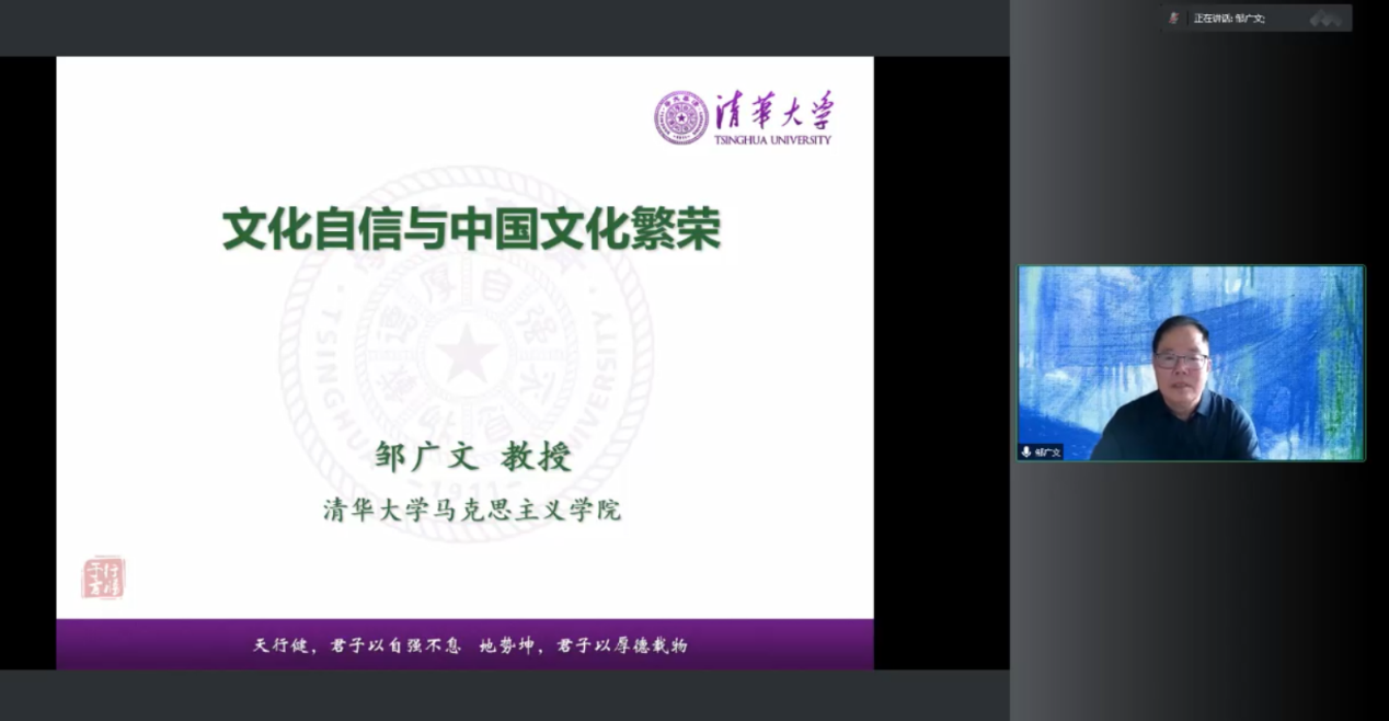 星空体育·星空网页版网站入口网6月11日电(通讯员 许子玮)6月9日下午,2022年度清华大学唯真讲坛第八讲在“荷塘雨课堂”线上平台举办,清华大学马克思主义学院教授、清华大学教学委员会委员邹广文应邀作题为“文化自信与中国文化繁荣”的报告。