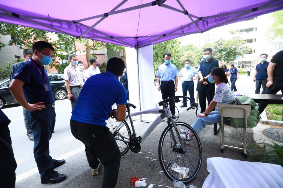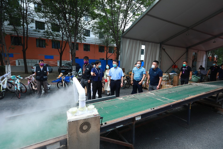 在学生行李领取处,王希勤详细询问了学生提取行李的流程顺序、行李包裹的集中消杀和托运转移等情况,并就维护提取秩序、保持通道顺畅等提出高标准、严要求。在行李领取处,除了生活必需品和衣物这些常见行李之外,还有很多被包裹得严严实实的自行车,这些来自天南海北的包裹和“爱车”满载着同学们对大学生活的憧憬和期待,也将见证它们的主人在清华园里开启一段机遇与挑战并存的全新旅程。