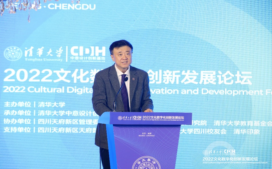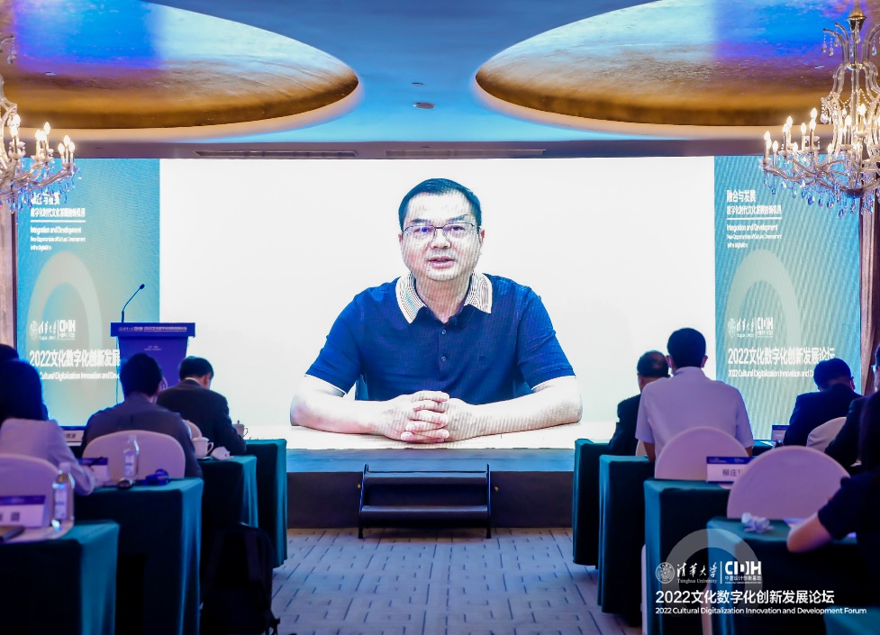 杨斌在致辞中指出,数字经济的快速发展为文化产业的数字化转型提供了崭新的发展机遇,文化与科技的深度融合也是当前文化产业发展的必然趋势。近年来,清华大学在推动文化数字化相关领域的发展取得了一系列实质性成果。2022文化数字化创新发展论坛的开幕,是我们携手推动构建文化数字化创新发展生态体系迈出的重要一步,旨在推动落实国家文化数字化战略,汇聚文化数字化创新力量,凝聚政府、产业与学术界多方智慧,构建文化数字化创新发展生态体系与交流合作平台。他表示,希望各方各界能够携手并肩,为实现中华文化全景呈现、中华文化数字化成果全民共享,为建设文化数字化创新发展生态体系而共同努力。