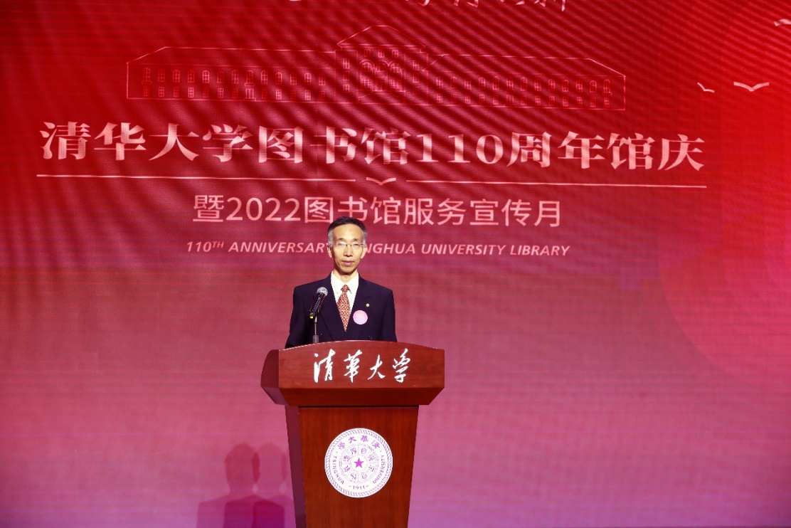 清华大学图书馆馆长金兼斌回顾了110年来图书馆与学校风雨同舟、与中国图书馆界勠力同心的历史,总结了图书馆在组织管理、馆藏建设、服务创新和资源共享等诸多方面作出的开创性工作。他表示,党的二十大刚刚胜利召开,图书馆将认真学习贯彻落实党的二十大精神和清华大学第十五次党代会精神,走内涵式高质量发展道路。围绕信息资源中心、知识服务中心、文化交流中心三个中心,为建设研究型、数字化、开放式的世界一流大学杰出图书馆而努力。